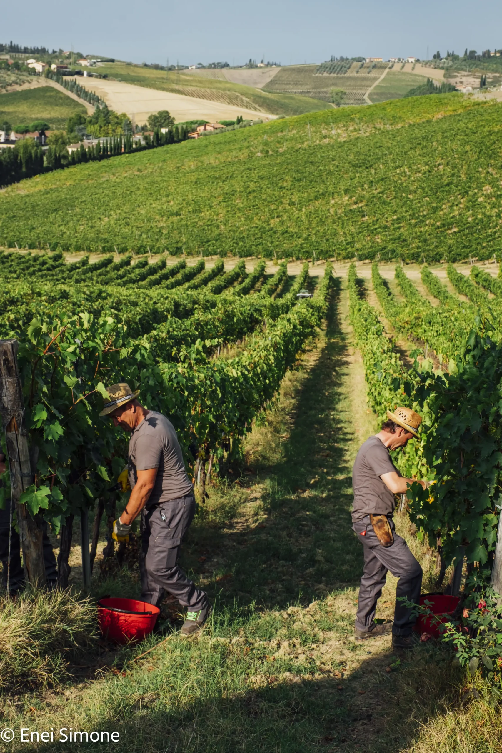 Caratteristiche pedoclimaticheA Vinci, le brezze tirreniche e le correnti notturne del Montalbano garantiscono ventilazione e freschezza costanti. I suoli pliocenici, ricchi di argilla e minerali, favoriscono drenaggio e maturazioni equilibrate, offrendo uve sane e aromatiche per vini eleganti e armoniosi